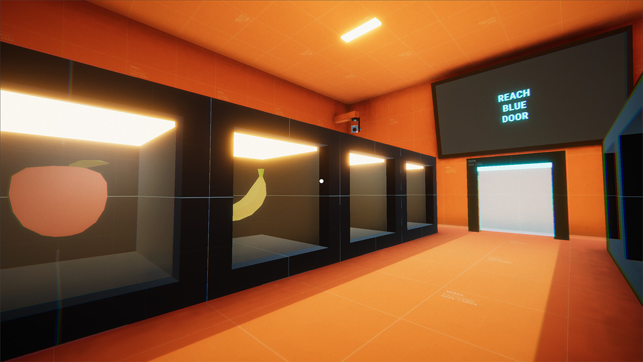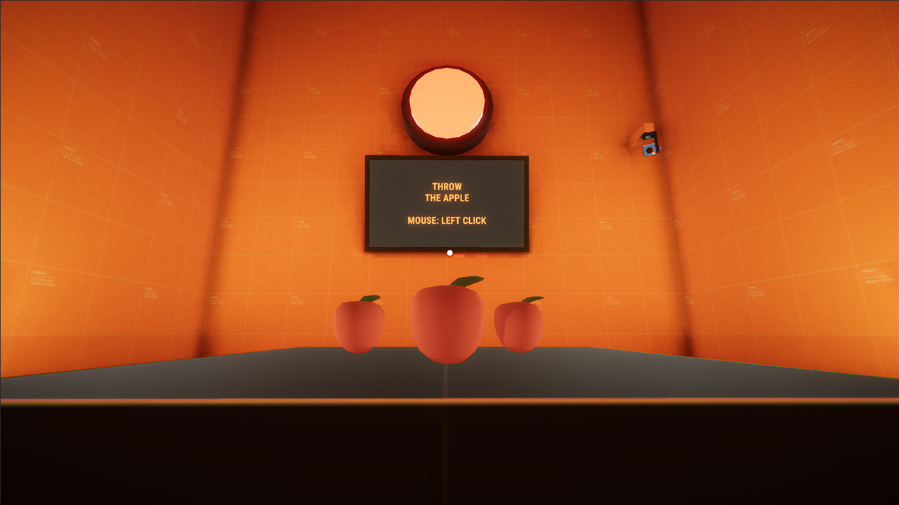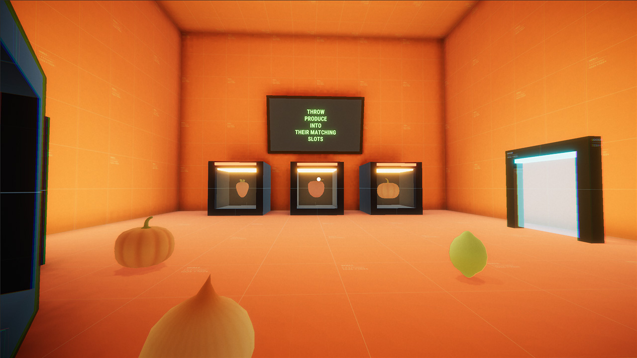 It is a game prototype where you explore tight, isolated rooms with puzzles and organic food and fight with hostile robots in a dodgeball match.
