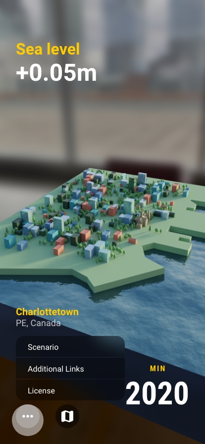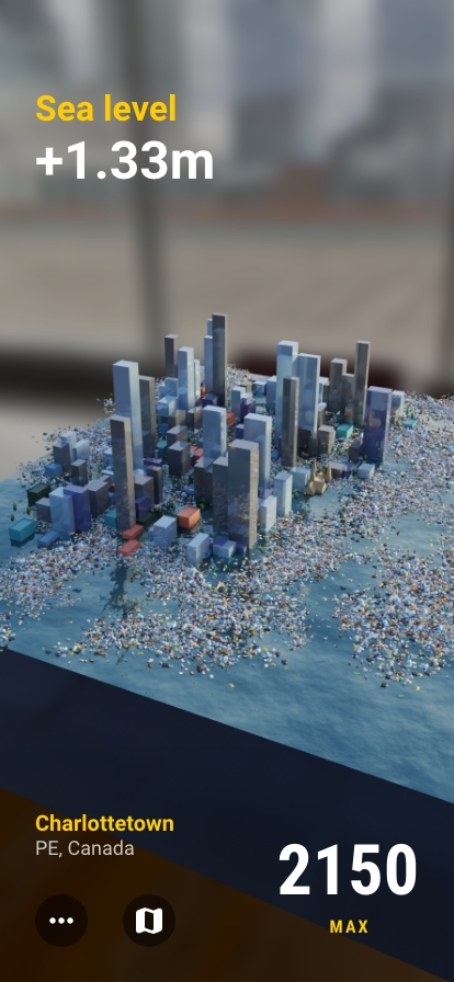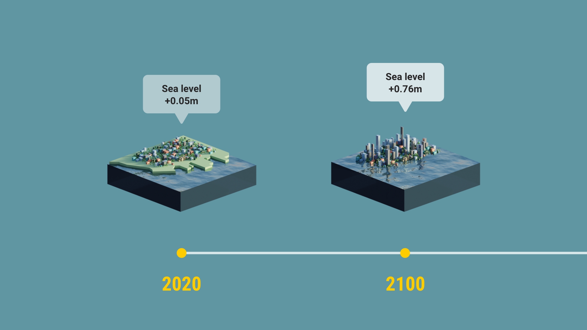 The program automatically updates the number indicating sea level depending on the year. The model will also reflect the sea level as the water rises and floods the street and buildings.