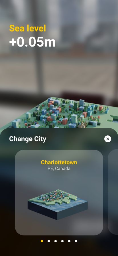 The app will communicate with the phone and determine the user's closest coastal city. A model of the city will be rendered on the plane.