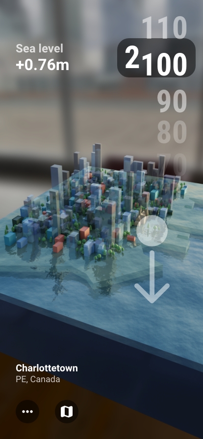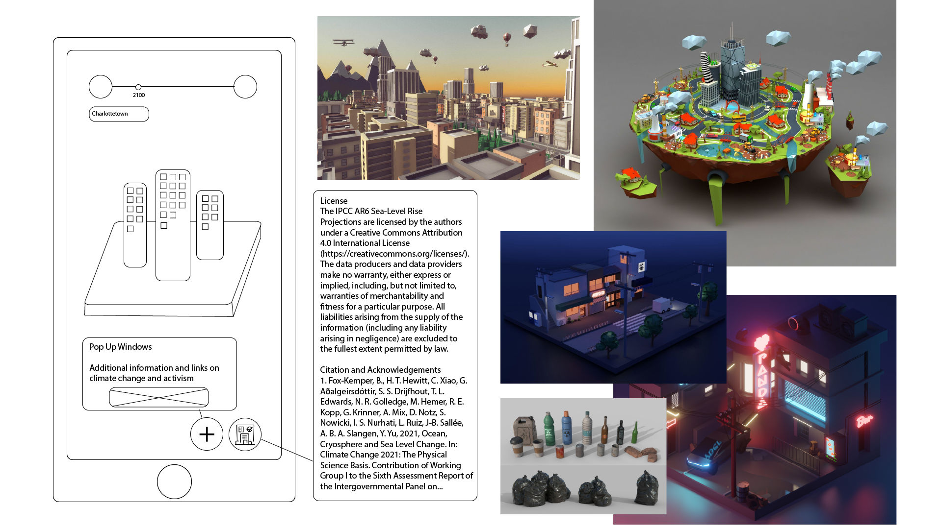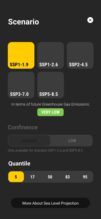 Additionally, users can dive deeper into the sea level projection by going to Scenario to change how the sea level is projected. There will also be a page where users can access links to learn more about climate change and climate activism.