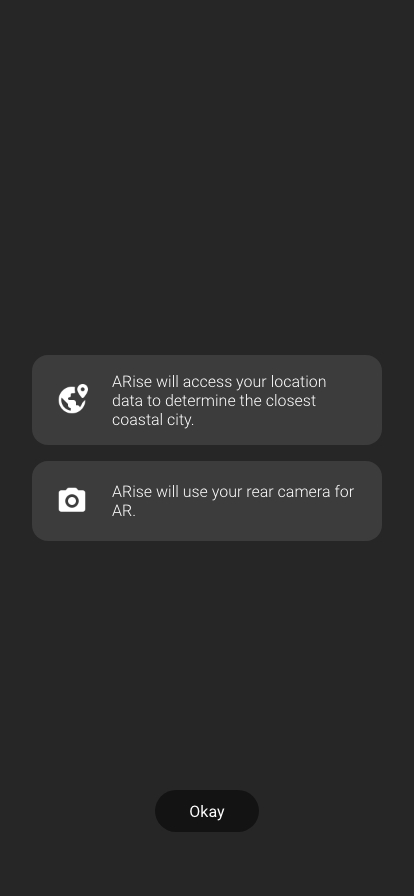 ARise (RISE) is an augmented reality (AR) mobile app concept. It will render the nearest coastal city to the user with their location data in a diorama with a simulated sea level based on projected and scientific data fromNASA.